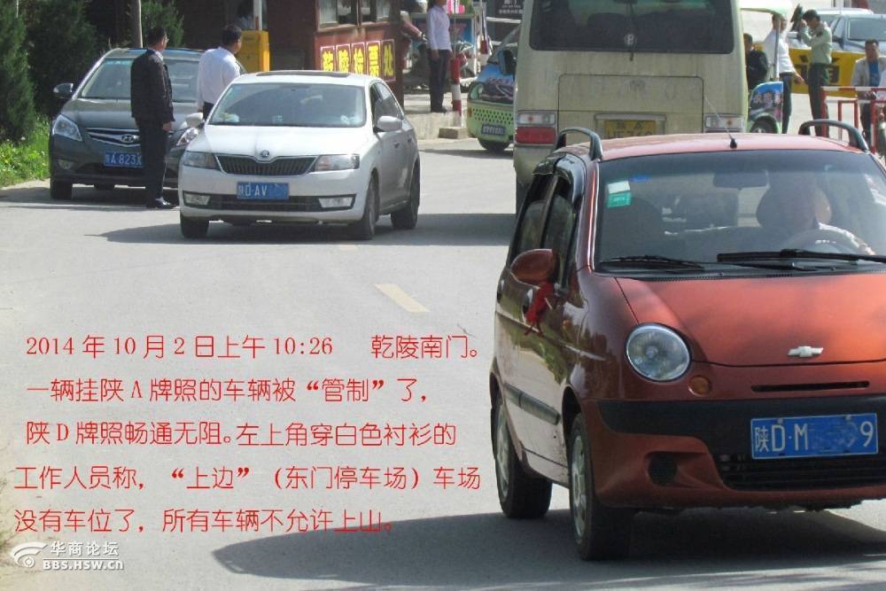 网友称,之后他把车停到停车场,交了停车费,准备步行上山。这时,一位当地人过来说,可以坐他的私家车上去,畅通无阻。他不相信,但回头一看,“管制”的路口对“陕D”牌照的当地车、出租车、旅游大巴个个放行,个别非当地牌照的车辆也跟着上去了。