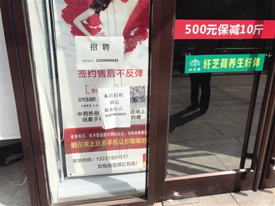 纤体店的玻璃门上张贴着转让告示