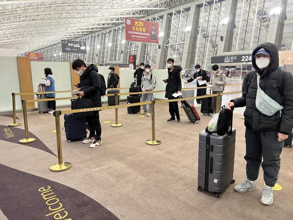 1月20日凌晨5点10分,西安天还未亮,首都航空西安基地的保障人员已经就位,等候学生们的到来。6点39分,第一辆学生大巴到达机场,在工作人员的指引下,大家间隔1米接受核码查验,有序进入候机楼办理值机手续。8点34分,162名学生已全部办理完值机,托运行李148件,陆续通过安全检查候机。9点31分,学生开始登机,并依次使用手部消毒,认真落实各项防疫政策,9点43分,162名学生已全部登机完毕。