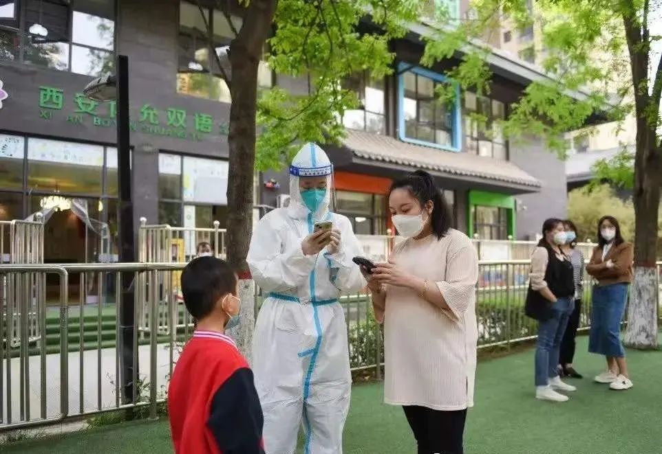 4时许,闫萍把女儿送到西安市莲湖区桃园一坊社区的核酸采样点,帮她穿好防护服,然后自己来到桃园路核酸采样点。5时,她们同时开始了核酸采样工作。