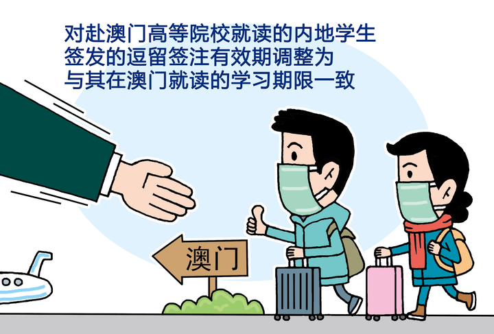 公安机关出入境管理机构对赴澳门高等院校就读的内地学生,签发的逗留签注有效期由最长不超过1年,调整为与其在澳门就读的学习期限一致。
