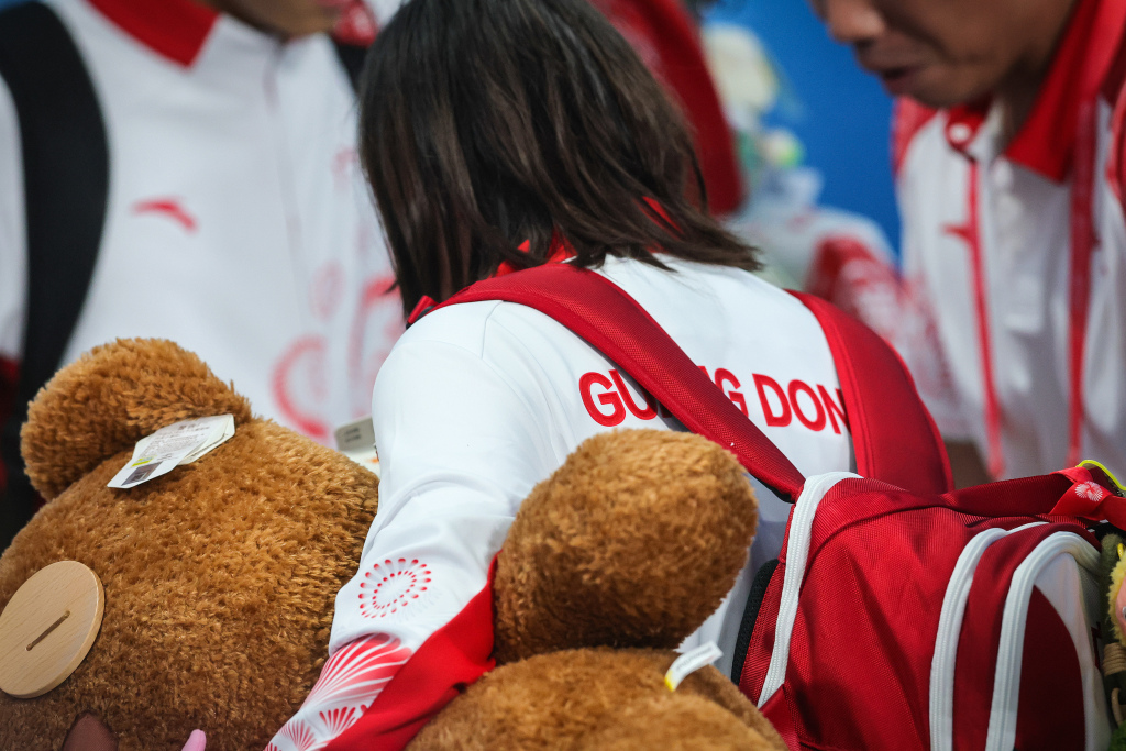 给师兄谢思埸“带娃”、在场边为其他选手加油、收集观众赠送的毛绒玩具……即便忍受着伤痛,她也在全力去享受赛场,“很高兴能看到很多广东的以及外地的粉丝,特别感谢他们来关注跳水,感谢他们来看我们,以后也请多多关注跳水。”