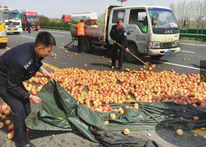 一辆拉水果的货车,在高速路上侧翻了,水果散落一地,咸阳高速交警快速出警,经过一个多小时的救援,道路恢复正常。
