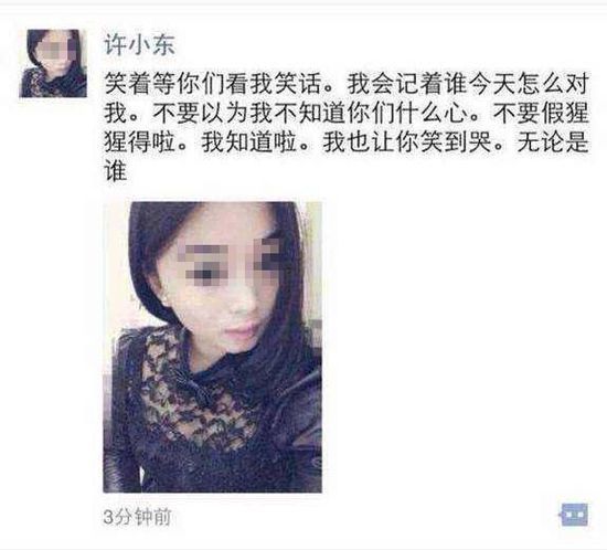 记者在调查中发现,被监视居住后,许晓东仍然不掩饰自己张扬的个性。她在网上写道:“笑着等你们看我笑话。我会记着谁今天怎么对我。不要以为我不知道你们什么心……我也让你笑到哭。无论是谁。”