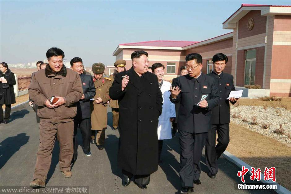 当地时间2015年1月10日报道,朝鲜平壤,根据朝鲜中央通讯社报道,朝鲜最高领导人金正恩参观位于平壤的蘑菇工厂,视察了工厂的内部设施并现场指导工作。 图片来源:东方ic 版权作品 请勿转载