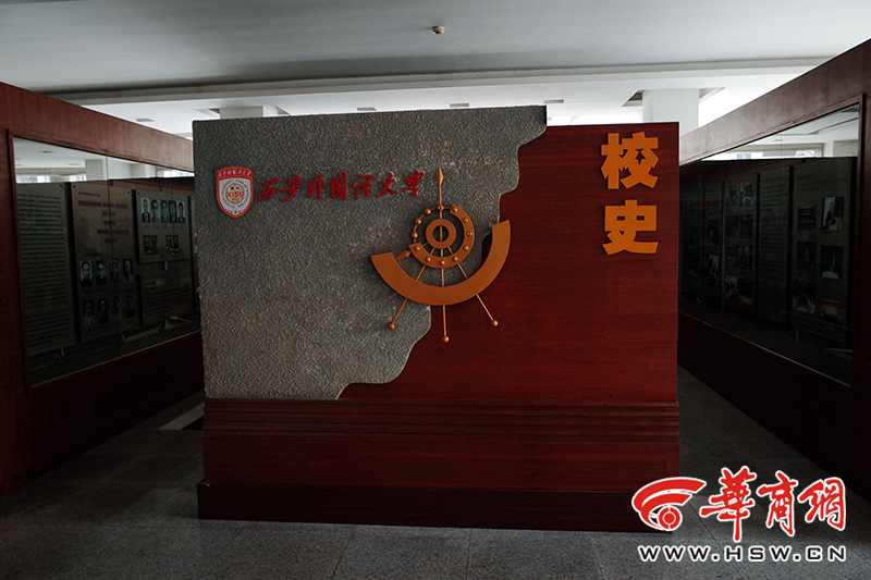 西安外国语大学雁塔校区图书馆内的校史展示区