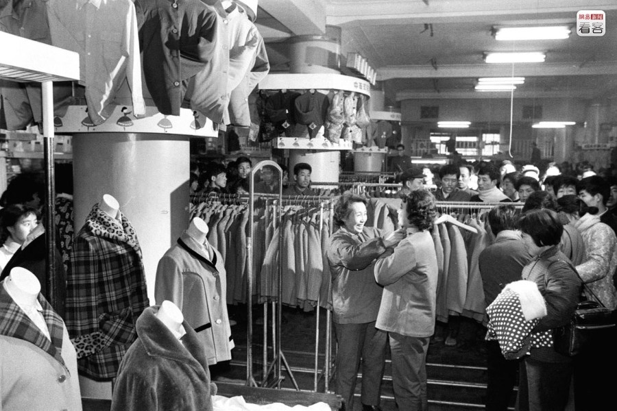 1979年1月22日,上海商业区南京路,春节前夕显得格外繁荣。许多商店修饰一新,货架上的商品琳琅满目,不少商店还恢复了传统商品的经营。从早到晚,南京路上熙熙攘攘,人们正在欢乐地购买年货。杨溥涛摄