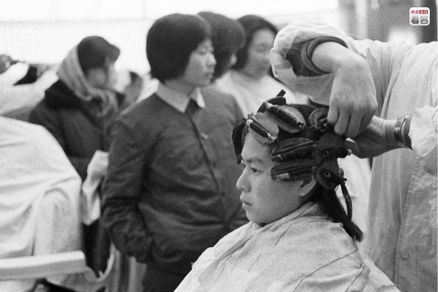1982年春节前夕,北京,青年们在排队等理发。蒋铎/Photobase/FOTOE