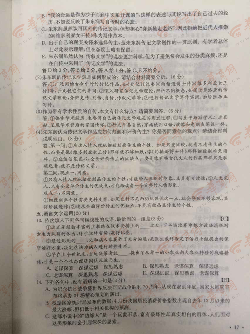 2015陕西高考语文试题答案(组图)