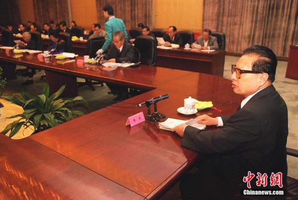 乔石同志因病医治无效,于6月14日7时08分在北京逝世,享年91岁。图为八届全国人大常委会委员长会议 1997年12月17日在北京人民大会堂召开,乔石主持会议。