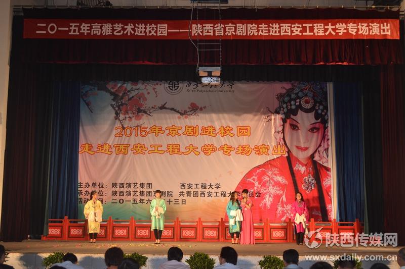 陕西传媒网讯(记者 陈燕)为落实立德树人根本任务,引领青年学生提高审美和人文素养,6月23日,由陕西演艺集团、西安工程大学主办,陕西省京剧院、共青团西安工程大学委员会承办的“2015年高雅艺术进校园——陕西省演艺集团京剧院专场”走进西安工程大学临潼校区,为在校大学生带来了一场经典的传统文化盛宴。