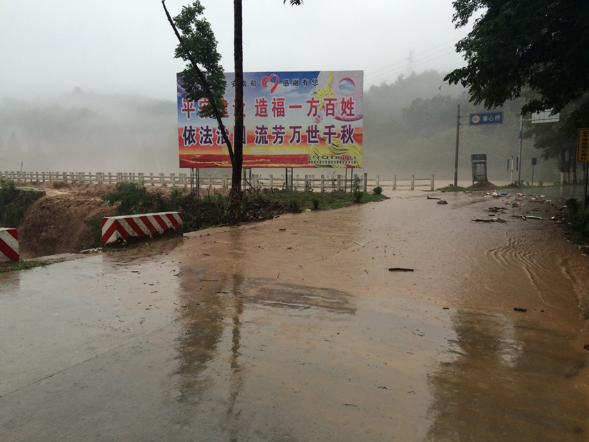 6月28日,南郑县牟家坝镇,洪水冲过南心桥,漫上公路 华商报记者 曾春 摄
