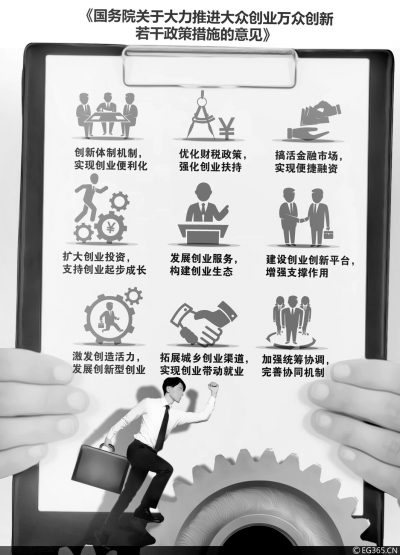 ■创新体制机制、优化财税政策、搞活金融市场、拓展城乡创业渠道,为创业创新开辟广阔天地。