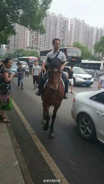 网友报料,在武汉雄楚大道竟然有人骑马上班。