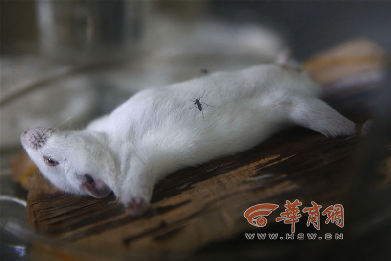 实验室给雌蚊子提供活体小白鼠供其吸血