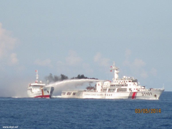 中国海警船队在西沙只对越南船喷水执法