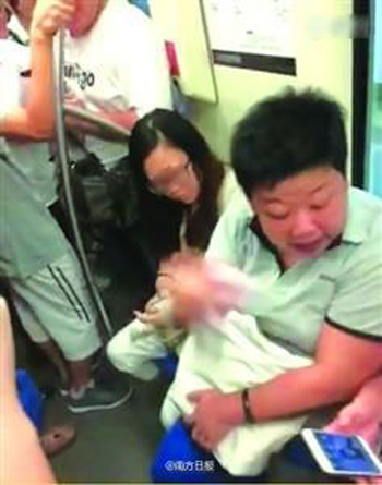 视频显示,一名手缠绷带的女乘客拼命顶靠座位末端,向身旁穿粉色衣服的小姑娘挤去,甚至动手打人,而在“粉衣女”另一边坐着的胖阿姨挺身而出,为其打抱不平,甚至让“粉衣女”与其互换座位,希望用自己的身体去保护“粉衣女”不被“绷带女”打骂。