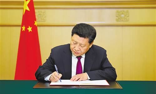8月29日,国家主席习近平签署主席特赦令,根据十二届全国人大常委会第十六次会议29日通过的全国人大常委会关于特赦部分服刑罪犯的决定,对参加过抗日战争、解放战争等四类服刑罪犯实行特赦。新华社记者 兰红光 摄