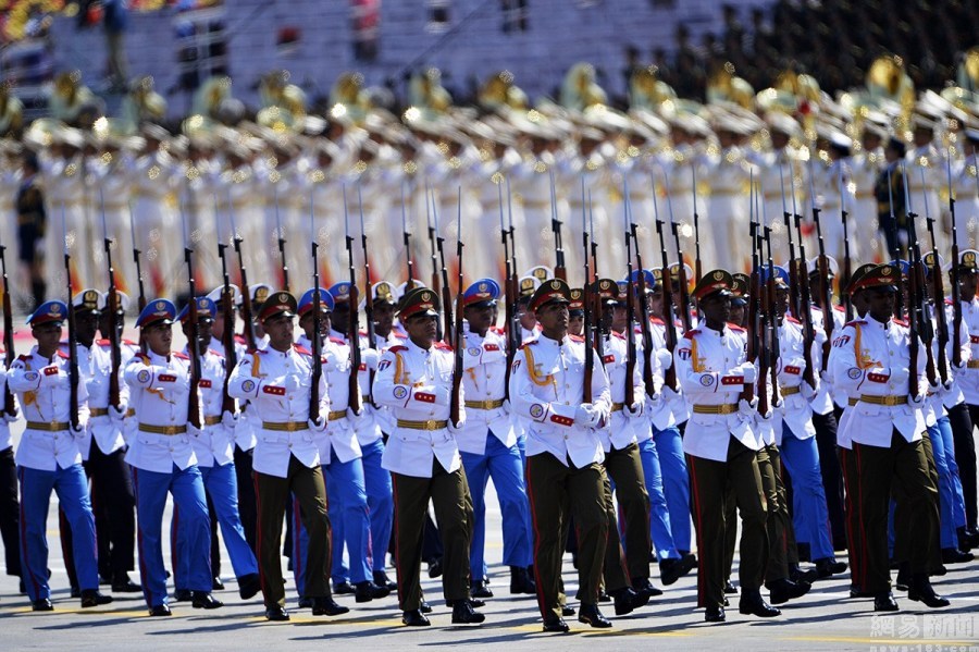 9月3日,中国人民抗日战争暨世界反法西斯战争胜利70周年纪念大会在北京隆重举行。这是古巴方队通过天安门广场。 新华社记者 普布扎西 摄