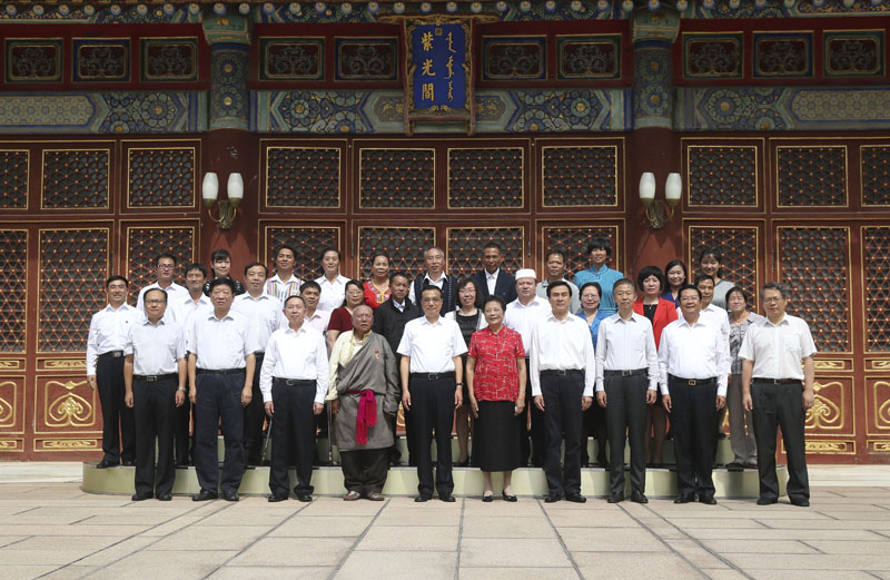 9月8日,中共中央政治局常委、国务院总理李克强在中南海紫光阁会见全国教书育人楷模及优秀乡村教师代表并作重要讲话。这是李克强同10位全国教书育人楷模和15位优秀乡村教师代表合影。中新社 杜洋 摄