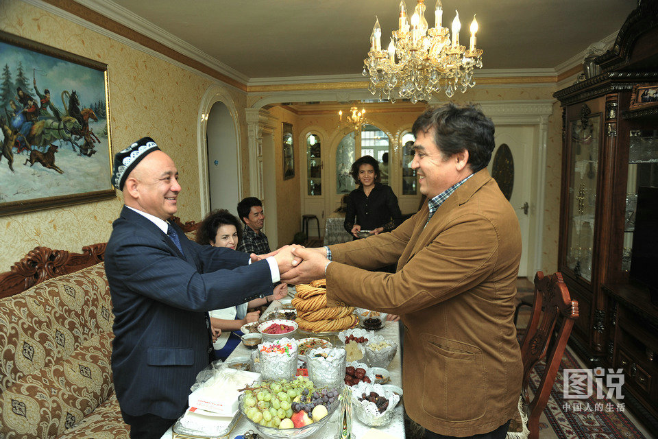 来到岳母家时,伊力扎提的姐夫已经早早地到了,他和姐夫见面时一边握手一边相互说着问候的话。