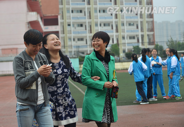 9月28日,午饭后,刘芳与两位同事在学校操场上散步聊天。新华社记者 王全超 摄
