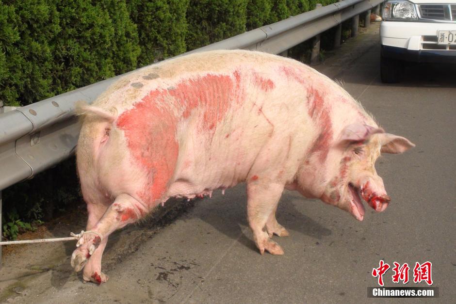 【延伸阅读】 遂宁高速肥猪“越狱” 交警出动吊车捉拿“二师兄”