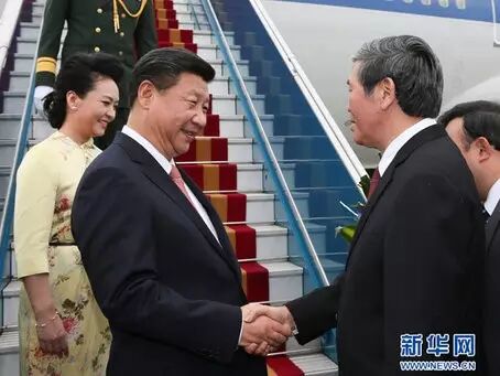 11月5日中午12时许,中共中央总书记、国家主席习近平乘坐的专机抵达河内内排国际机场,开始对越南进行国事访问。习近平和夫人彭丽媛受到越共中央政治局委员丁世兄等的热情迎接。