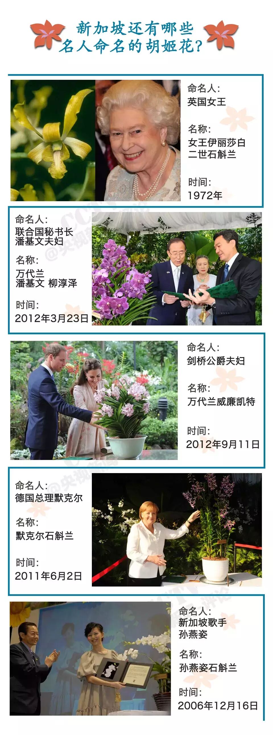 以习近平夫妇命名的胡姬花会叫什么名字?目前尚不知晓,不过此前有很多首脑、贵宾的名字为培育出的新品种胡姬花命名,这些花的名字也许会给我们一些参考: