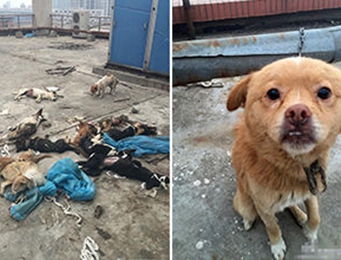 12月6日上午9点左右,记者在学校看到,发养试验用狗的基础医学部已经大门紧锁,记者从旁边一座教学楼的天桥来到基础医学部楼顶,基本确定了网友所发图片就是这里。记者看到,仍有8只健康的实验用狗被拴在六楼的栏杆上。与网友提供的图片不同的是,一些蓝色的无菌布仍被扔在地上,但实验用过的狗已经不见了踪影。