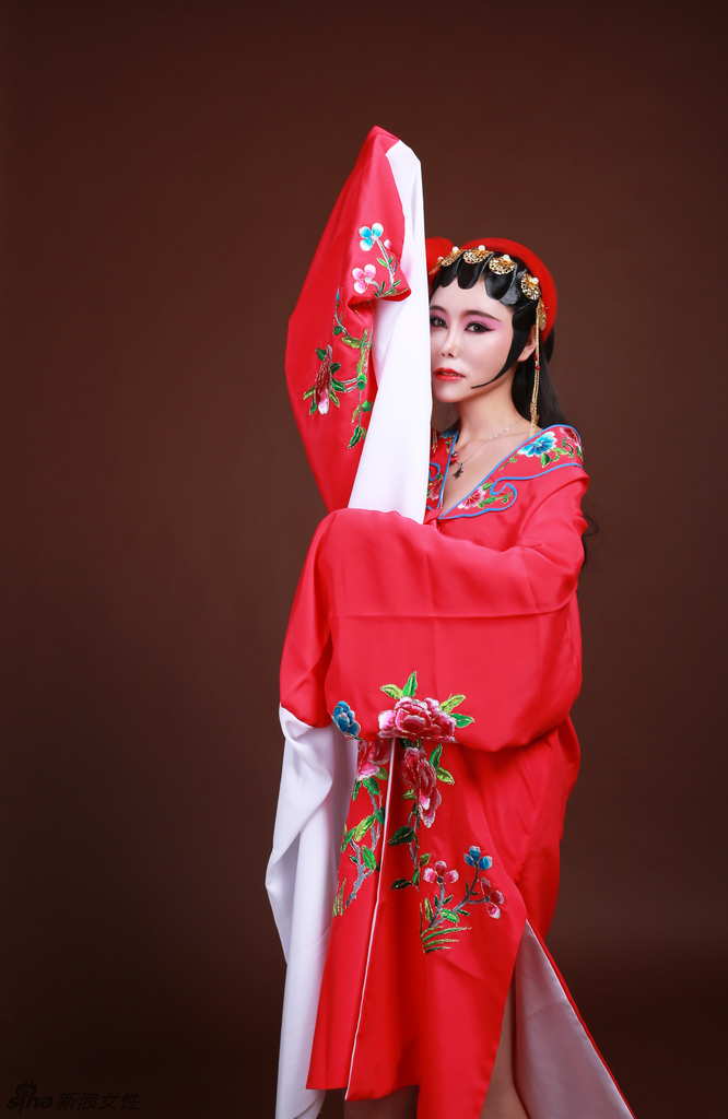 上戏校花钱晓琪一组京剧写真曝光,以名伶造型亮相的她,头戴精美的花旦头饰,时而半露香肩,时而大秀美腿,摆出对镜帖花黄的造型