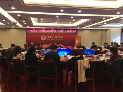 12月24日下午,“十三五:决胜全面小康社会与智库使命担当”研讨会暨《中国改革与发展热点问题研究(2016)》新书发布会在国家行政学院举行。
