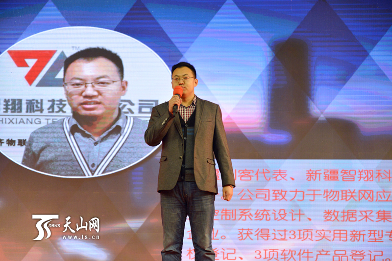 新疆智翔科技创始人之一成麒麟在新疆丝路创客网络联盟启动仪式上畅想未来物联网新突破。天山网苏剑超摄影