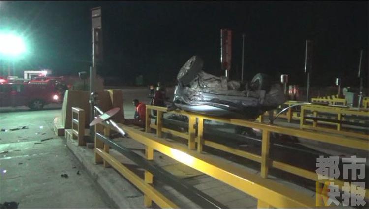 清晨六点多,一辆四川牌照的小轿车侧翻在了收费站的车道上,小轿车发生了180度翻转,车顶着地,车轮冲天。 车内的人员在车祸中受伤,120急救人员赶到后,立即展开急救。