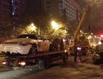 目击者介绍,当时保时捷撞飞了护栏,径直撞上了对向开来的出租车。而这钢铁护栏又是怎么到了十米开外的路边道沿上呢?