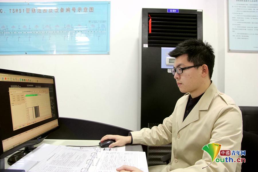 白宗源在工作时间要查看一天的每一条线路的运行状况,如果有问题,电脑上的路线图会显示波动,如果远行状况良好就显示平稳,这个工作简单而重复,但需要高度的责任感和警惕心。中国青年网记者李延兵 摄