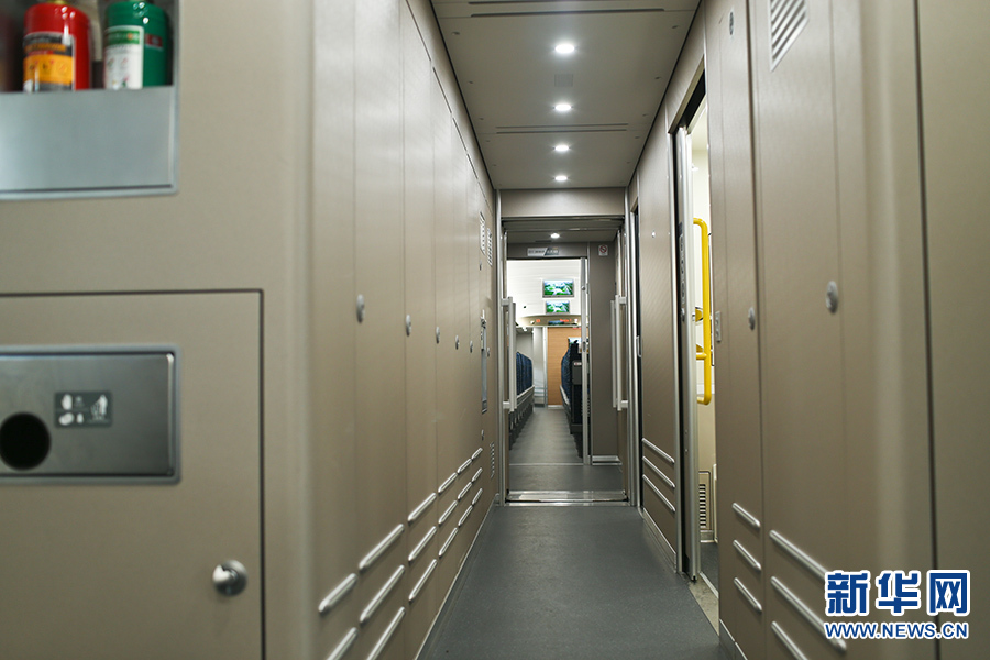 图为新造CRH380A统型动车组上新增的高铁行包存储箱。(张学东 摄)