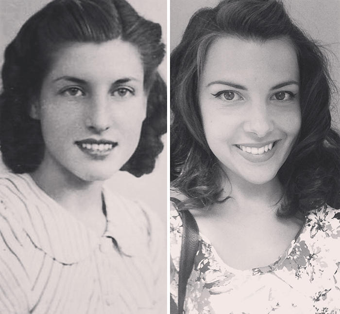 除了晒自己和父母的,有些网友甚至搬出了自己和爷爷奶奶的对比:我和我奶奶,时隔71年