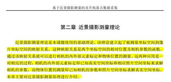 澎湃新闻记者从中国知网下载了这两篇硕士学位论文,分别是南京航空航天大学机械制造及其自动化专业2007届硕士毕业生朱笑笑的《基于近景摄影技术的直升机落点位置测量研究》(以下简称“朱笑笑论文”)和吉林大学应用数学专业2008届硕士毕业生李锐的《基于近景摄影测量和模式识别技术的直升机落点位置自动测量研究》(以下简称“李锐论文”)。