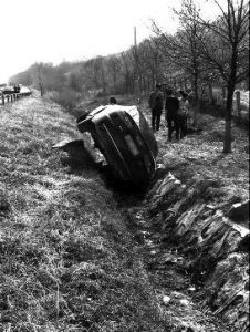 华商报记者在现场看到,发生车祸的路段正好处于高速公路一段护栏的开始端,肇事车辆行驶方向突变后失控冲上护栏滑行十余米,在护栏外的草地继续滑行二十多米后侧翻在排水渠内,驾驶员一侧朝上,另一侧落入渠底。车辆保险杠、车灯、发动机等部位损毁严重,驾驶座及副驾驶座安全气囊均已打开。车上司乘人员共4人,其中一个坐在副驾驶的小伙子口鼻有出血,自己用瓶装水擦洗,伤情并不严重。。