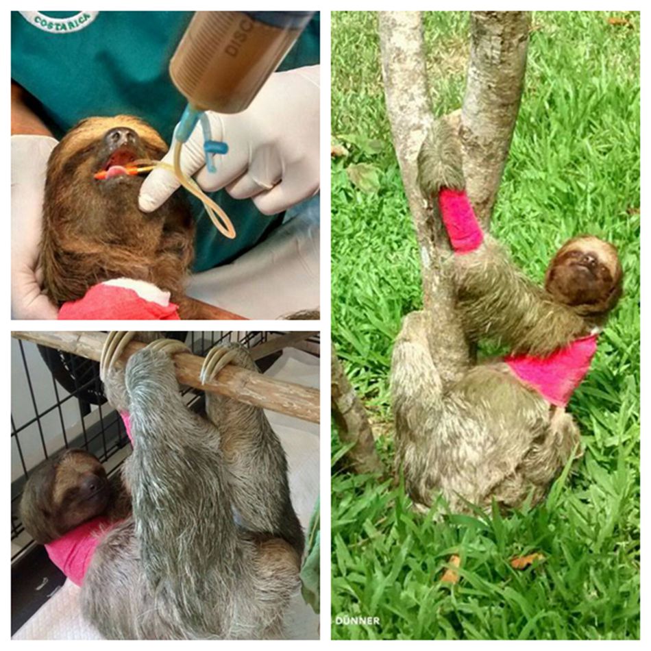 一只名为布劳里奥的成年树懒在当地居民和救助所的帮助下恢复健康。当时人们发现布劳里奥时它奄奄一息,右臂烧伤,怀疑是因为接触电线,工作人员不得不为它做截肢手术。(网页截图)