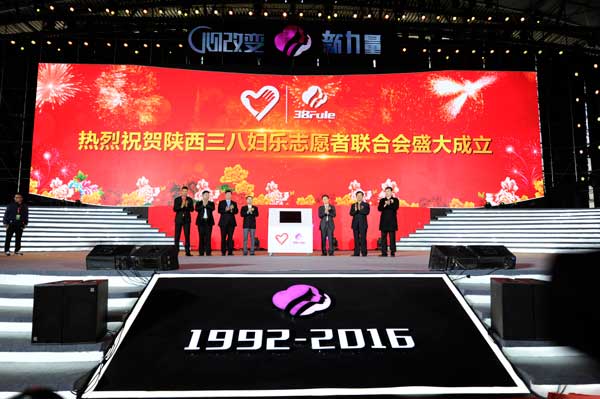 2016年3月26日,陕西省首家民营企业志愿者联合会——陕西三八妇乐志愿者联合会在曲江会展中心正式成立。团中央志工部综合协调处处长黄英锋、团省委副书记单舒平等相关单位领导,全国各地的14000多名企业员工代表参加了成立大会,正式宣誓成为志愿者。