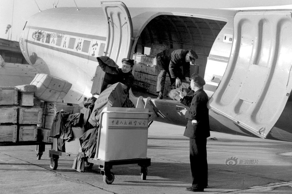 1998年,我国实行邮电分营,成立国家邮政局。2006年,中国邮政集团公司成立。时至今日,在一些偏远落后的地方,邮递仍是人们与外界联系的唯一途径。中国邮政四分之三的网点、三分之二的邮路在农村。图为1953年,北京,大量邮包被装上飞机。郑光华/FOTOE