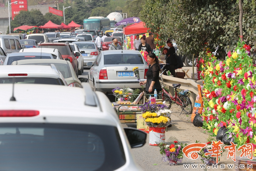 2016年4月2日上午,在西安长安区前往凤栖山墓园的道路上车辆拥堵严重。 华商报记者 邓小卫 摄