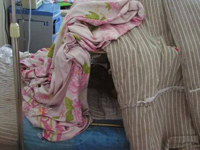 4月11日下午,华商报记者在延安协和医院3楼住院部见到了被烧伤的蓉蓉。病房里烧着暖气,她被厚厚的被子遮挡起来,脸部、手部、腿部、背部都被不同程度烧伤。因为浑身不舒服,她不时发出呻吟的声音。刘霞在一旁耐心地安慰着情绪不稳的蓉蓉,想为女儿减轻点疼痛。
