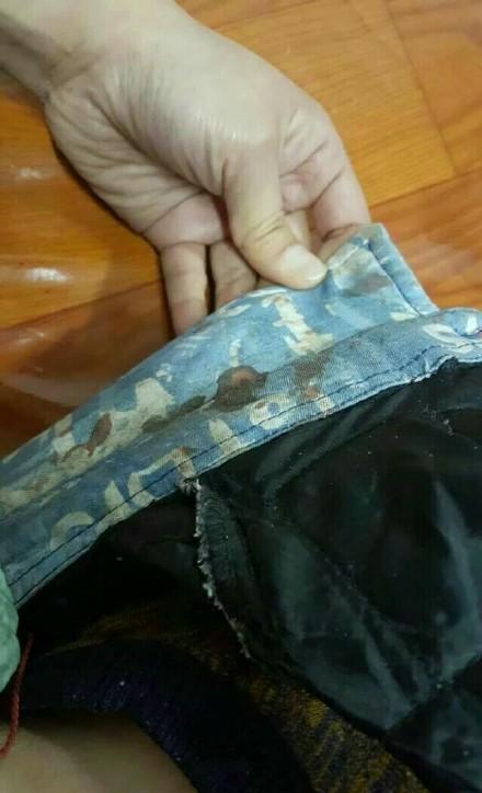 死者衣服上的血迹。