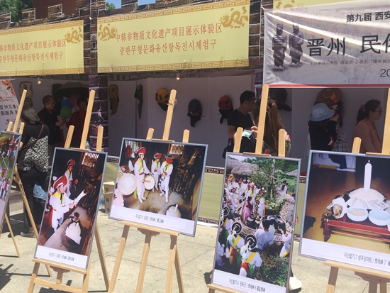 在汉城湖封禅广场活动启动仪式上,20个展棚分列东西,极具传统文化和民族特色的中韩非遗项目进行了集中展演。来自韩方表演巫戏表演、乐器、四物游戏、空竹表演、转碟游戏、风舞戏法等展演活灵活现。我方呈现的微缩社火、秦腔脸谱、皮影、马勺、吹糖人、捏面人、糖画、泥塑、剪纸、陶艺、篆刻、布艺、香包、刺绣、九连环、风筝、灯笼、花馍、娃娃哨、陶埙等非物质文化遗产项目现场展示精彩绝伦,其中陕西方言版的古诗文吟诵让人们近距离感受到了中国传统文化艺术的神奇魅力。