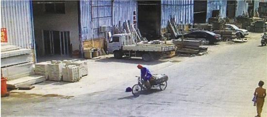 直到上午8点50分左右,一名骑着三轮车的男子经过这里,下车查看后把包捡走了。“他穿着蓝色的工作服,戴着个红色的安全帽,把包打开看了下,然后就捡起来放到了车上。”