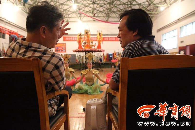 杂技团团长贾云鹏(右)和著名导演王宏在彩排时对节目不断提出新的要求