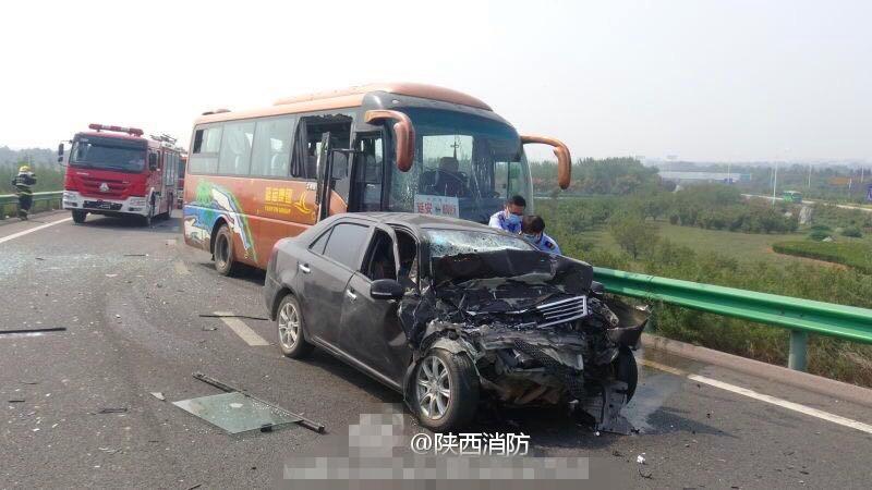 轿车西安机场高速辅路逆行 与大巴车相撞小车三人亡【4】